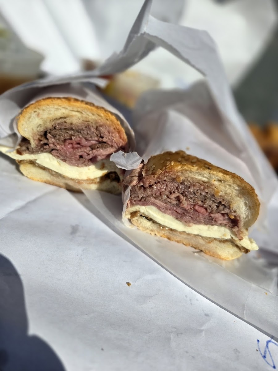 Came right before closing - the staff were top notch. Very helpful. The place is cute. No sitting only standing space. I don’t remember where I was recommend but got there 30 min before closing and they were very nice. I wanted a hot roast for me and to go - but they only have enough for one - I would have eaten this for days if I got more tho. I’ll have to come back. Something about the meat the cheese that is just amazing. The hot roast is one of my top sandwich in the city at the moment However I also got an Italian and it was perfect. I kinda wanna try everything here so I will be back! Cash only thankfully for the atm this wasn’t a problem. The small is huge. But I wonder if they hooked me up cus that’s all that was left. Still would get a large and eat later if I go back